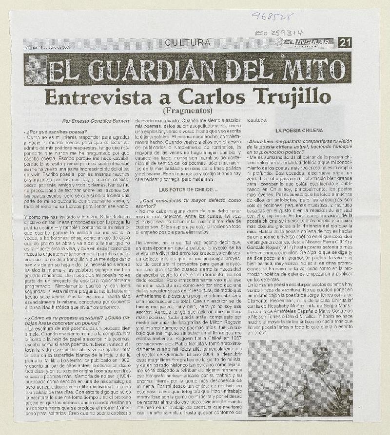 Entrevista a Carlos Trujillo (entrevista) [artículo] Ernesto Gozález Bernert.