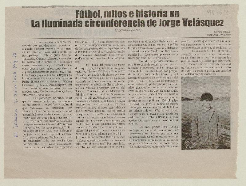 Fútbol, mitos e historia en La iluminada circunferencia de Jorge Velásquez (segunda parte) [artículo]Carlos Trujillo.