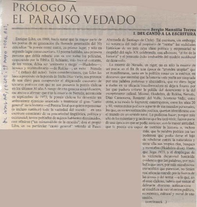 Prólogo a el paraíso vedado (Parte II) [artículo] Sergio Mansilla Torres.