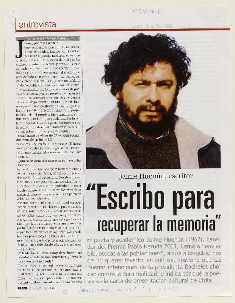"escribo para recuperar la memoria" (entrevista) [artículo] Montserrat Martorell.