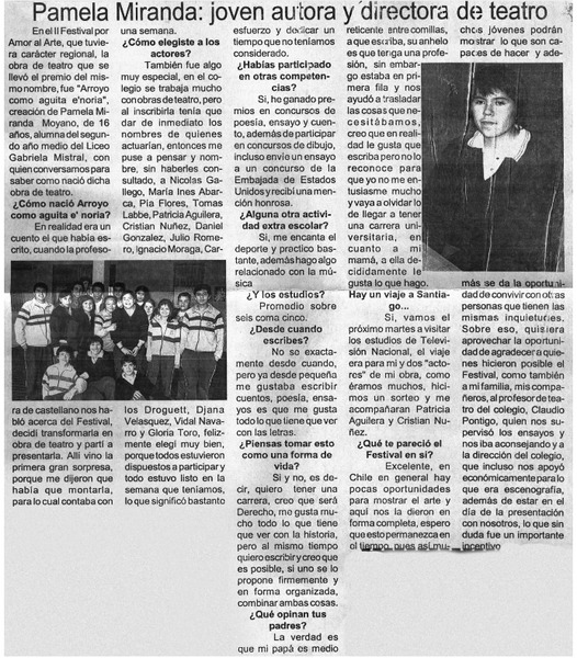 Pamela Miranda: joven autora y directora de teatro : [entrevistas] [artículo]