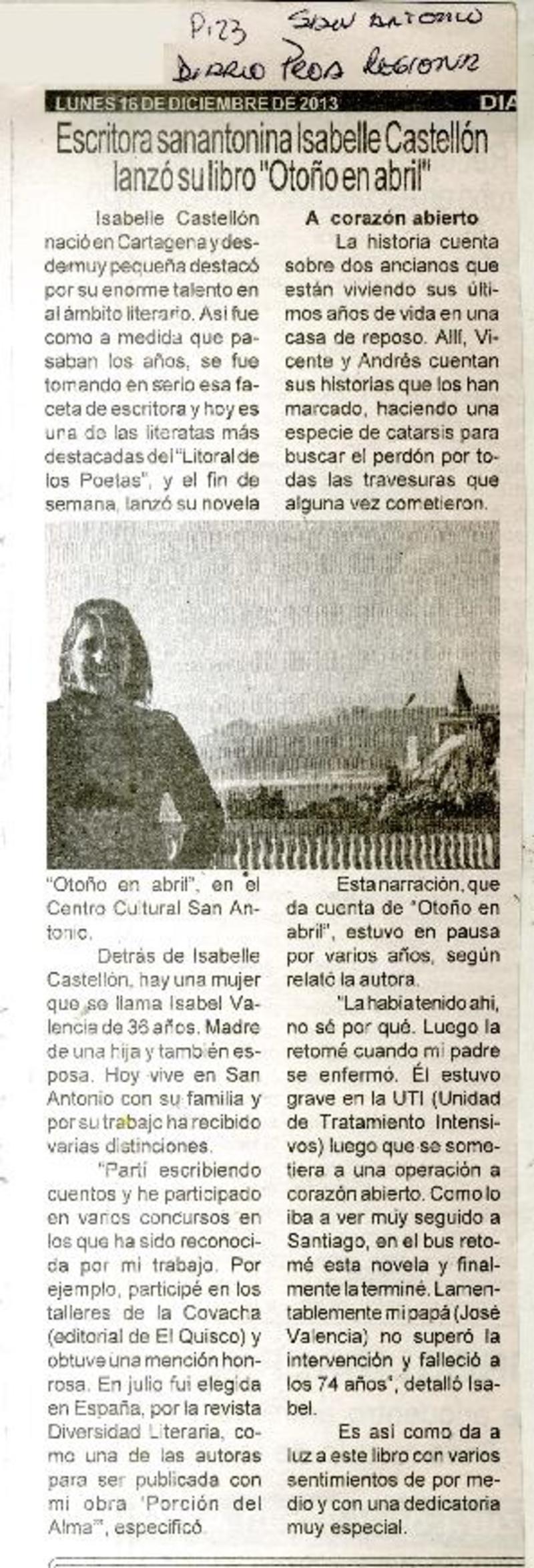 Escritora sanantonina Isabelle Castellón lanzó su libro "Otoño en abril". [artículo]