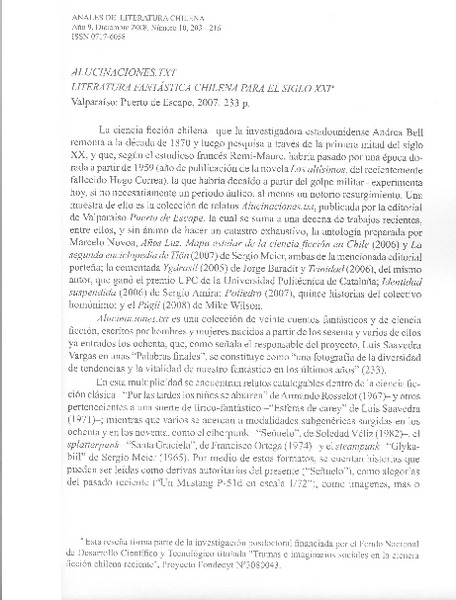 Ciencia ficción chilena reciente [artículo] Macarena Areco.