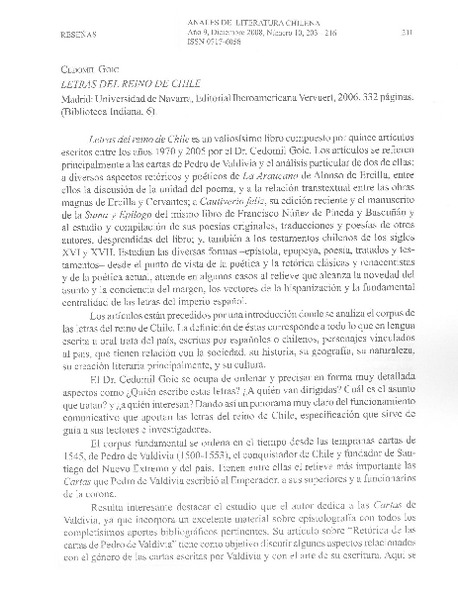 Letras del reino de Chile [artículo] Carolina A. Navarrete.
