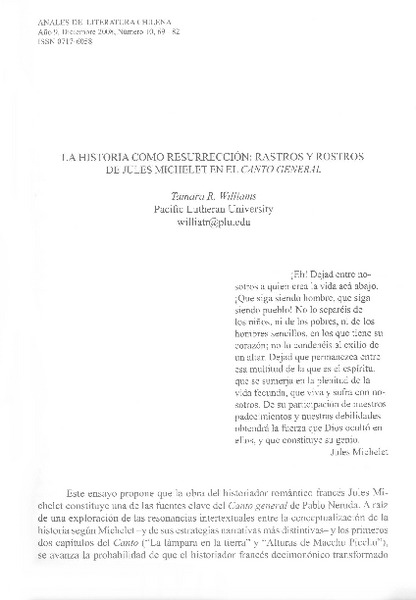 La historia como resurrección [artículo] Tamara R. Williams.