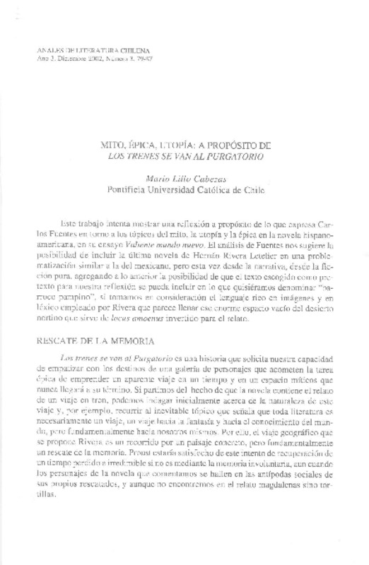 Mito, épita, utopía: a propósito de los trenes se van al purgatorio [artículo] Mario Lillo Cabezas.