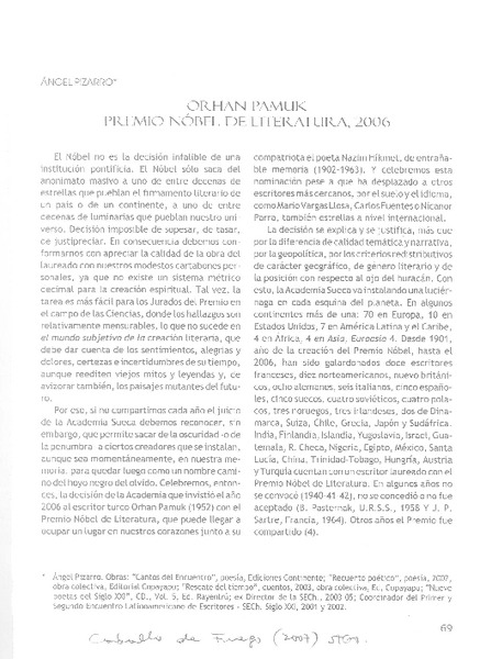Orhan Pamuk, Premio Nobel de Literatura 2006 [artículo] Angel Pizarro.