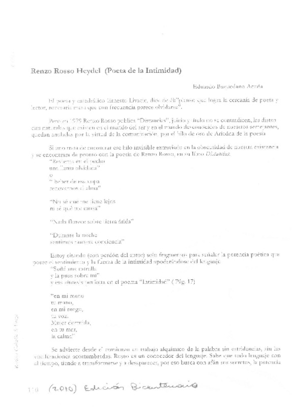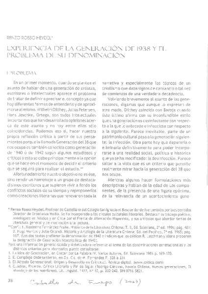 Experiencia de la Generación del 38 y el problema de su denominación [artículo] Renzo Rosso Heydel.