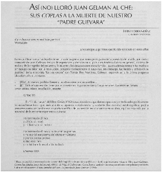 Así (no) lloró Juan Gelman al Che: sus coplas ala muerte de nuestro "Padre Guevara" [artículo] Luis Correa-Díaz.