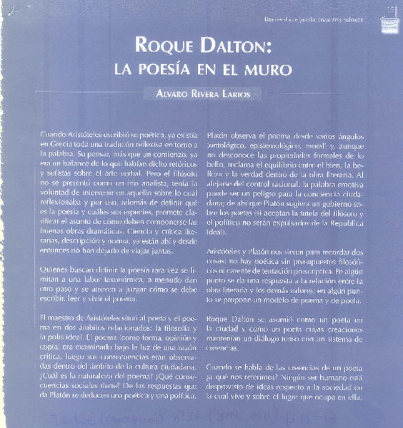 La poesía en el muro [artículo] Alvaro Rivera Larios.