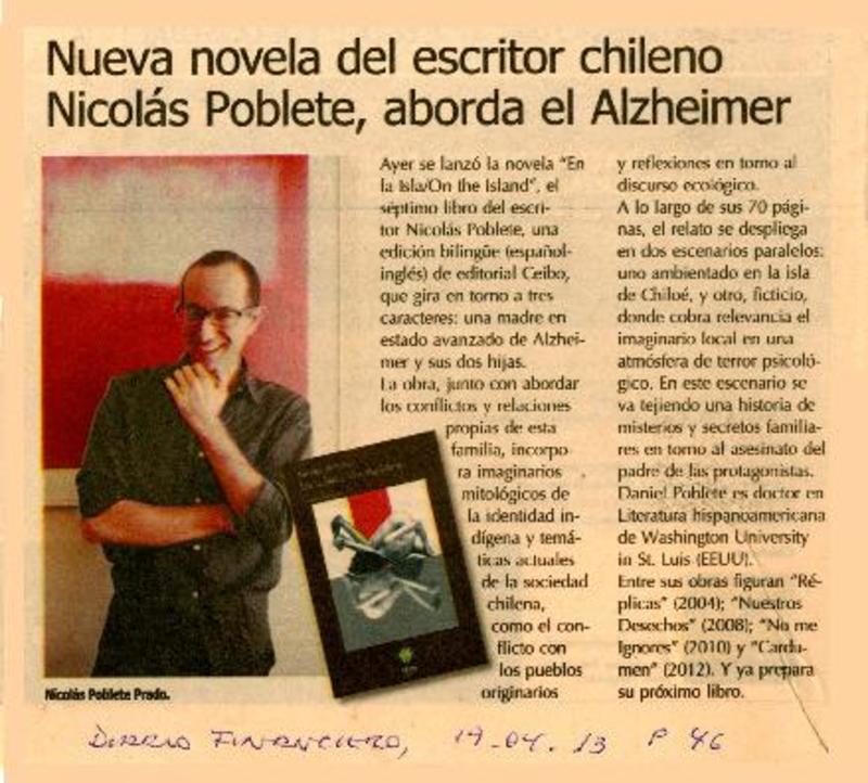 Nueva novela del escritor chileno Nicolás Poblete, aborda el Alzheimer. [artículo]