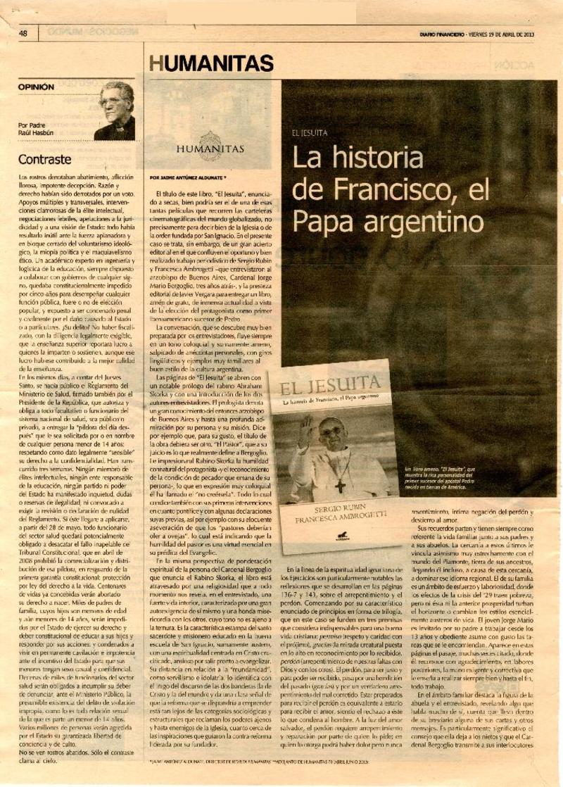 La historia de Francisco, el Papa argentino [artículo] Por Padre Raúl Hasbún.