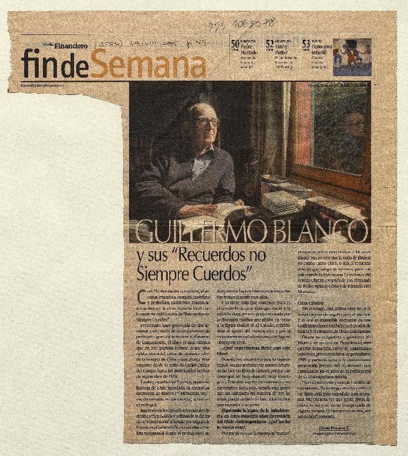 Guillermo Blanco y sus "recuerdos no siempre cuerdos" [entrevista] [artículo] : David Nogales T.