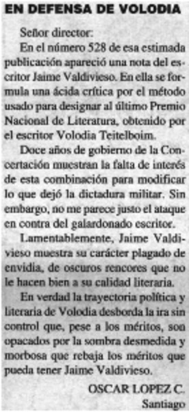 Sueños y realidades de Volodia [artículo] Luis Alberto Mansilla.