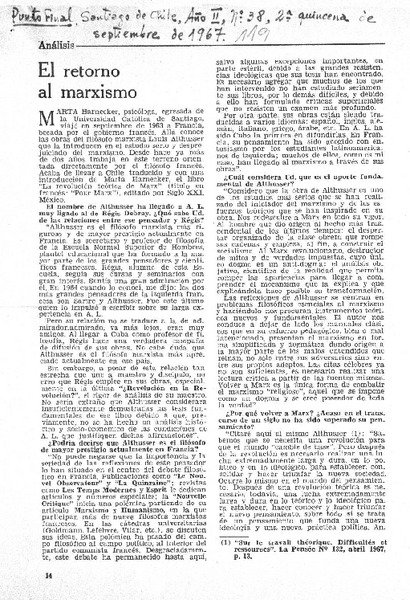 Autoras chilenas - Entrevistas - Autores franceses - Argentina - Harnecker, Marta - Althusser, Louis - Revolución teórica de Marx