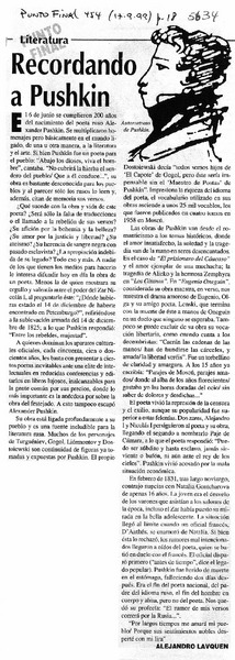 Recordando a Pushkin [artículo] Alejandro Lavquen.