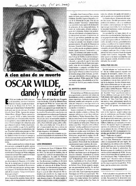 Oscar Wilde, dandy y mártir [artículo] Luis Alberto Mansilla.