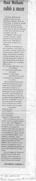 Raúl Mellado subió a nacer [artículo] Alejandro Cabrera F.