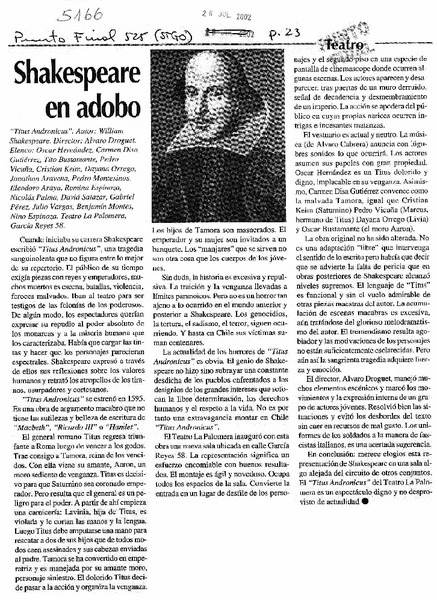 Autores chilenos - Titus andrónicus - Shakespeare, William - Autores ingleses - Droguett, Aldo