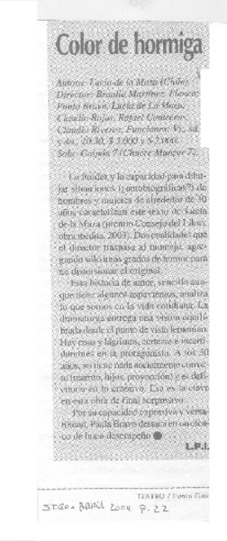 Autoras chilenas - Maza, Lucía de la - Color de hormiga