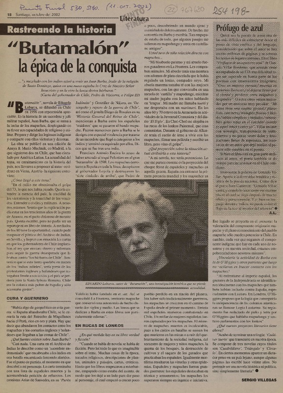 "Butamalón" la épica de la conquista [artículo] Sergio Villegas.