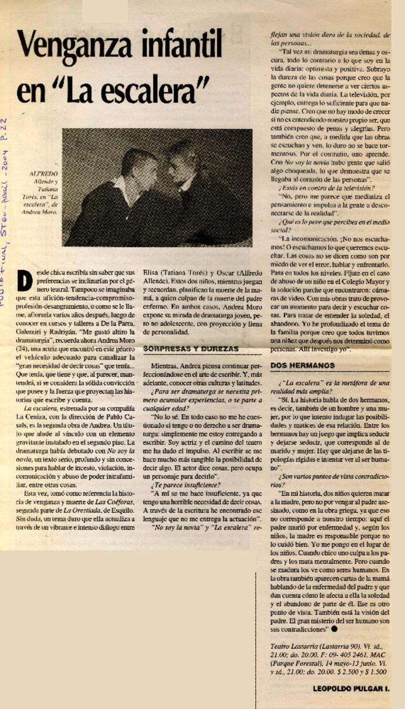 Autoras chilenas - Entrevistas - Moro, Andrea - Escalera, La