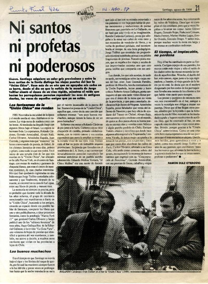 Ni santos, ni profetas, ni poderosos [artículo] Ramón Díaz Eterovic.