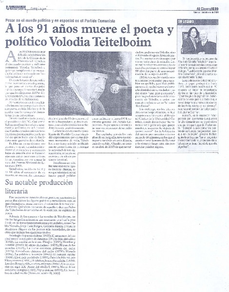 A los 91 años muere el poeta y político Volodia Teitelboim [artículo]
