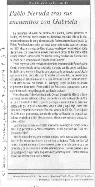 Pablo Neruda tras sus encuentros con Gabriela [artículo] Darío de la Fuente.