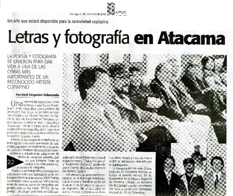 Letras y fotografìa en Atacama [artículo] Raùl Cèspedes Valenzuela.