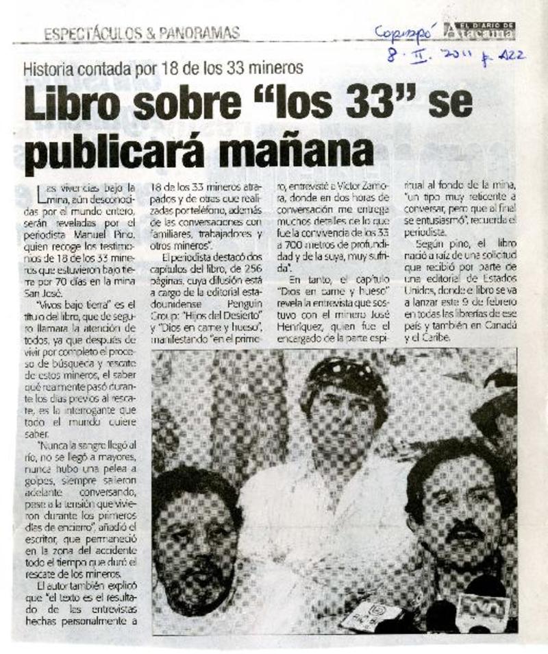 Libro sobre los 33 se publicará mañana [artículo]