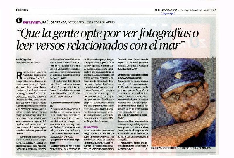 "Que la gente opte por ver fotografías o leer versos relacionados con el mar" (entrevista) [artículo] Raúl Céspedes V.