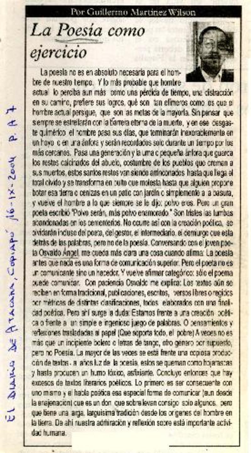 La poesía como ejercicio [artículo] Guillermo Martínez Wilson.