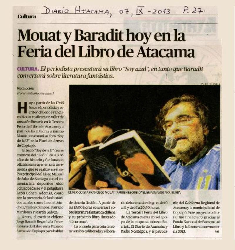Mouat y Baradit hoy en la Feria del Libro de Atacama [artículo]