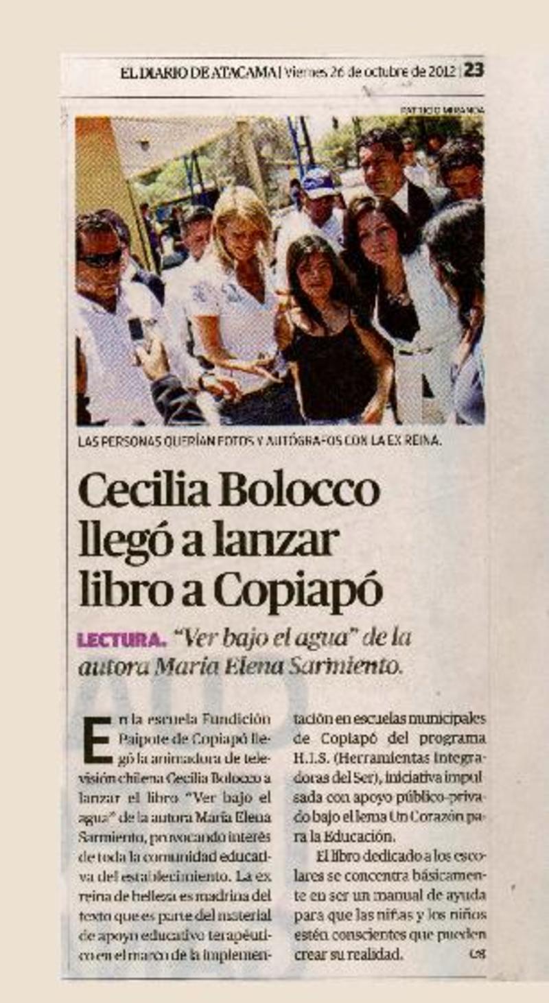 Cecilia Bolocco llegó a lanzar libro en Copiapó. [artículo]