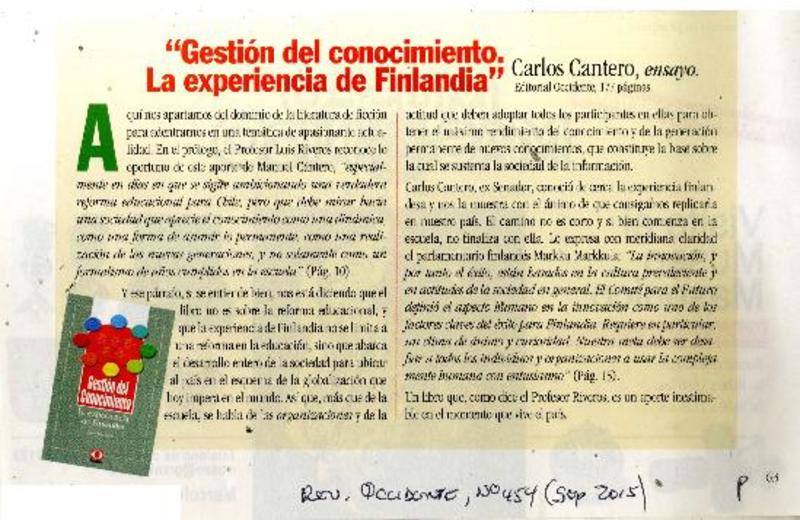 Autores chilenos - Cantero Ojeda, Carlos - Gestión del conocimiento. La experiencia de Finlandia