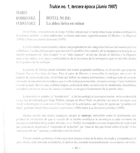 Réquiem para Jorge Teillier [artículo] Sergio Hernández.