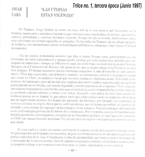Las utopías están vigentes [artículo] Omar Lara.
