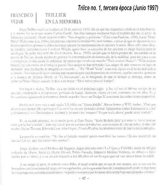Teillier en la memoria [artículo] Francisco Véjar.
