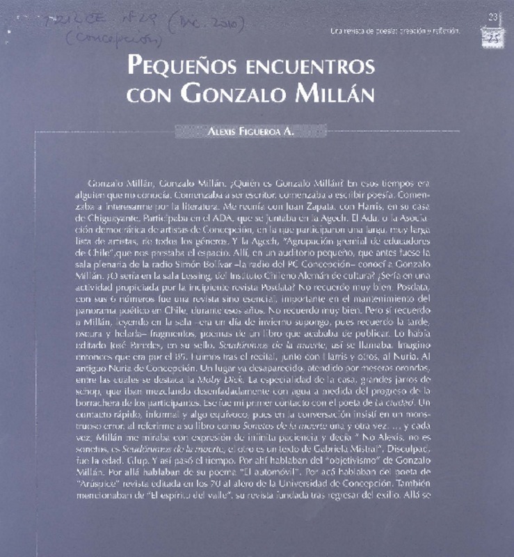 Pequeños encuentros con Gonzalo Millán [artículo] Alexis Figueroa A.