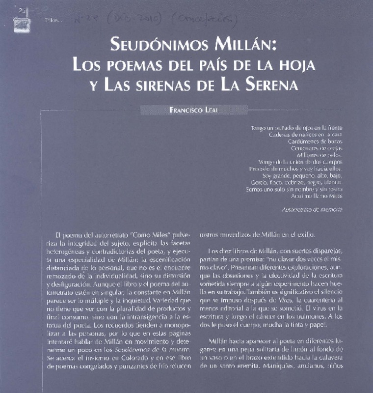 Seudónimos Millán [artículo] Francisco Leal.