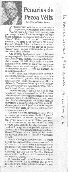 Penurias de Pezoa Véliz [artículo]Marino Muñoz Lagos.