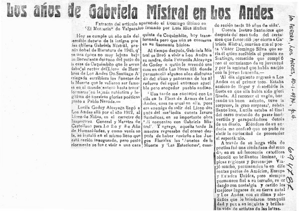 Los años de Gabriela Mistral en Los Andes. [artículo]