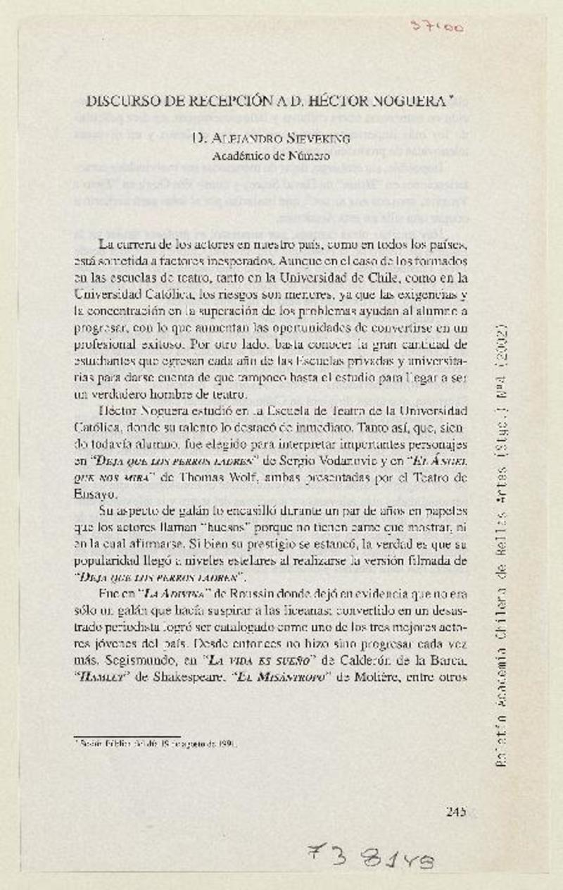Discurso de recepción a D. Héctor Noguera [artículo] Alejandro Sieveking.