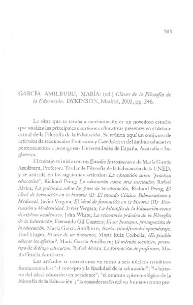 Autoras chilenas - García Amilburu, Maria - Claves de la filosofía de la educación