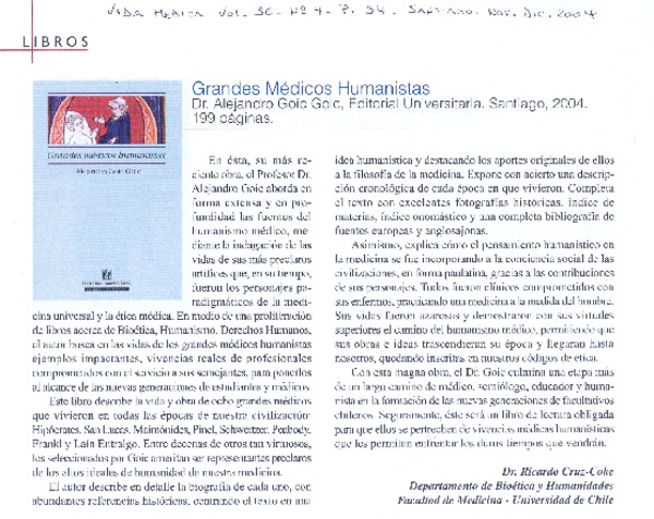 Autores chilenos - Goic G., Alejandro - Grandes médicos humanistas