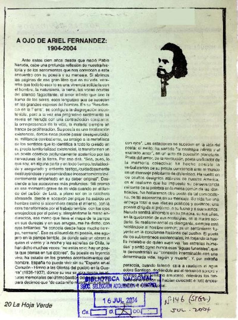 A ojo de Ariel Fernández [artículo] Ariel Fernández.