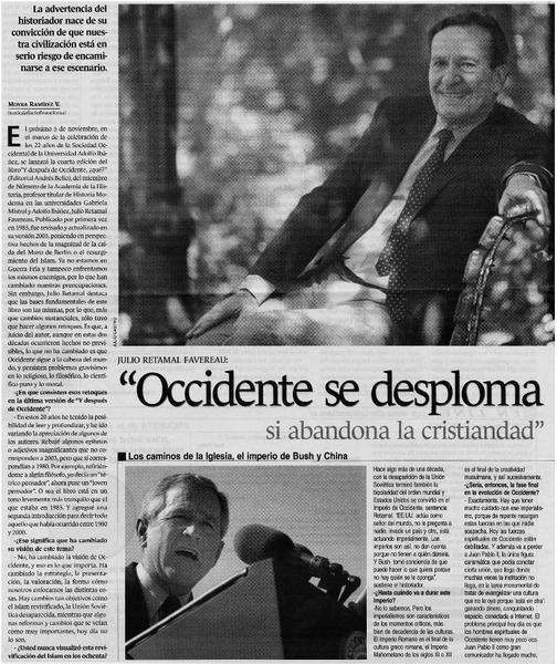 "Occidente se desploma si abandona la cristiandad" : [entrevistas] [artículo] Moyra Ramírez V.