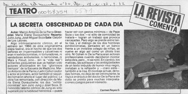 La secreta obscenidad de cada día [artículo] Carmen Reyes D.
