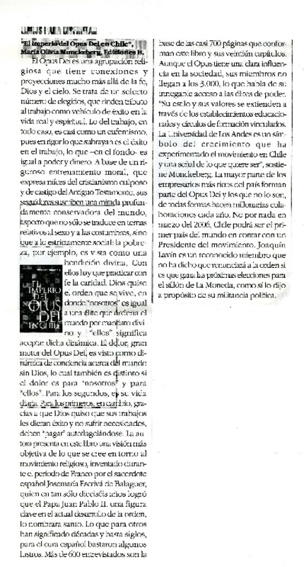 Autoras chilenas - Monckeberg, María Olivia - Imperio del Opus Dei en Chile